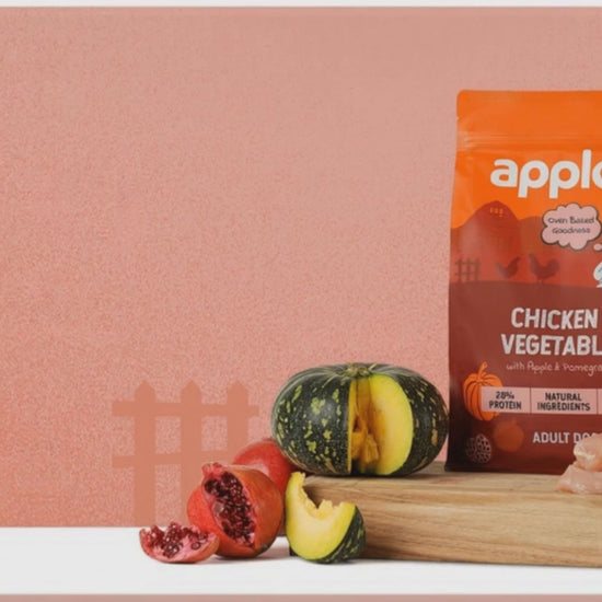 Applod Chicken & Vegetables with Apple & Pomegranate Dry Dog Food is a wholesome, oven-baked meal designed to support your dog’s everyday strength, energy, and wellbeing. With real chicken as the #1 ingredient and 28% high-quality protein, it helps support lean muscle, healthy body condition, and sustained vitality, ideal for active adult dogs.