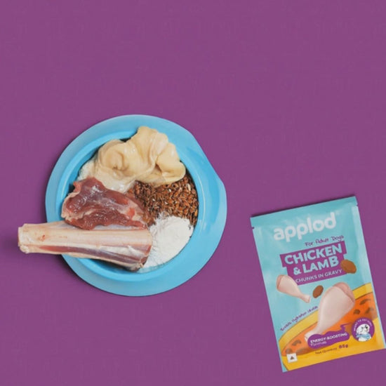 Give your dog the perfect balance of taste and nutrition with Applod® Tender Lamb & Chicken in Gravy. Packed with real lamb and chicken chunks simmered in rich gravy, this protein-rich meal fuels energy, builds lean muscles, and keeps your dog hydrated. Enriched with flaxseed, turmeric, and Vitamin E, it naturally supports digestion, joint health, and immunity. Free from artificial colours, preservatives, corn, wheat, and soy its a safe, wholesome choice crafted for adult dogs of all breeds.