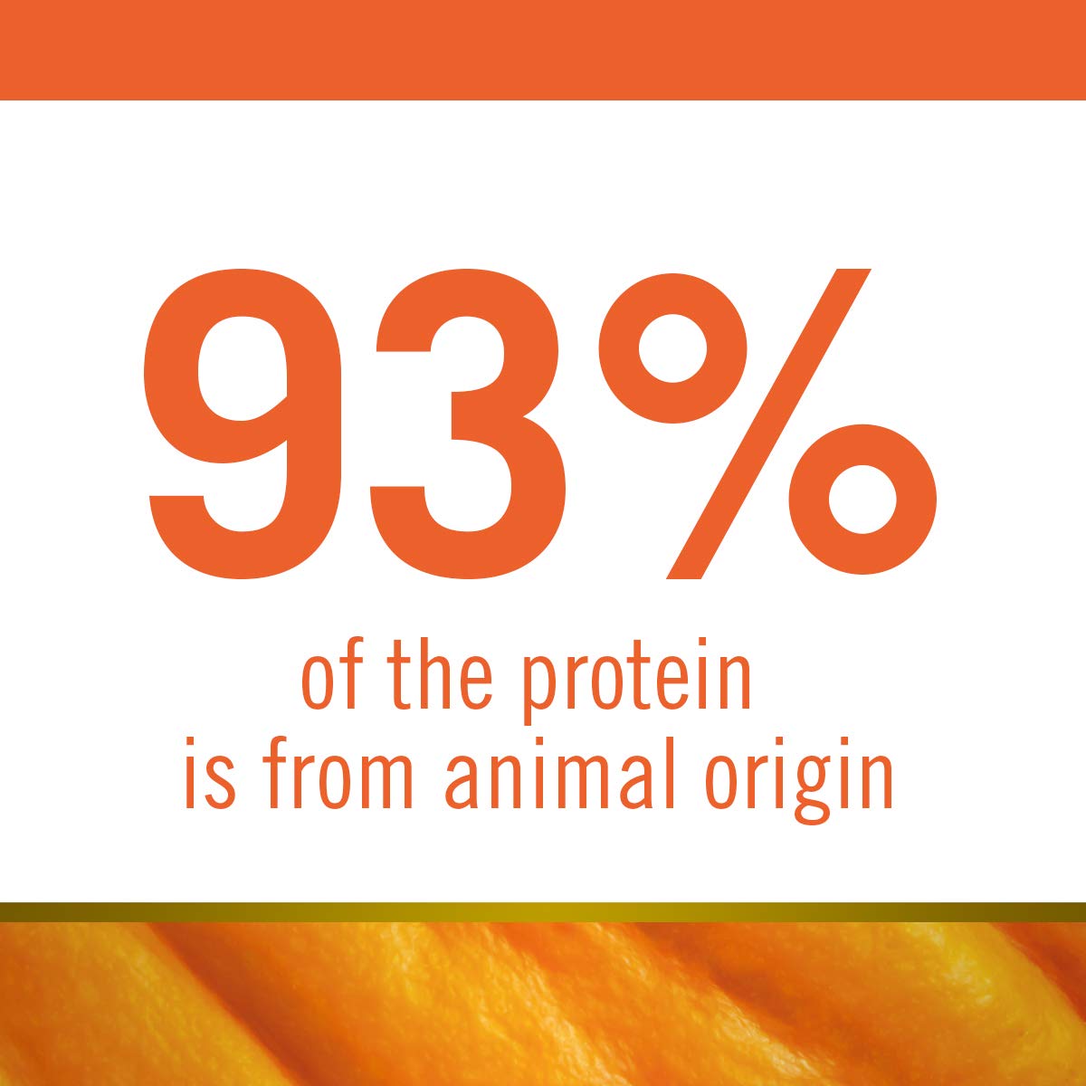 Deboned chicken (20%), Dried chicken protein (18%), Spelt (10%), Oats (10%), Chicken fat, Dried eggs, Herring, Dried herring protein, Dried beet pulp, Fish oil (from herring), Dried carrots, Alfalfa meal, Chicken cartilage (source of glucosamine and chondroitin sulphate), Inulin, Fructooligosaccharides, Yeast extract (source of mannan-oligosaccharides), Dried pomegranate (0.5%), Dried apple, Dried spinach, Psyllium husks and seeds (0.3%), Dried sweet orange, Dried blueberry, Sodium chloride, Dried brewer's yeast, Turmeric (0.2%), Aloe vera extract.