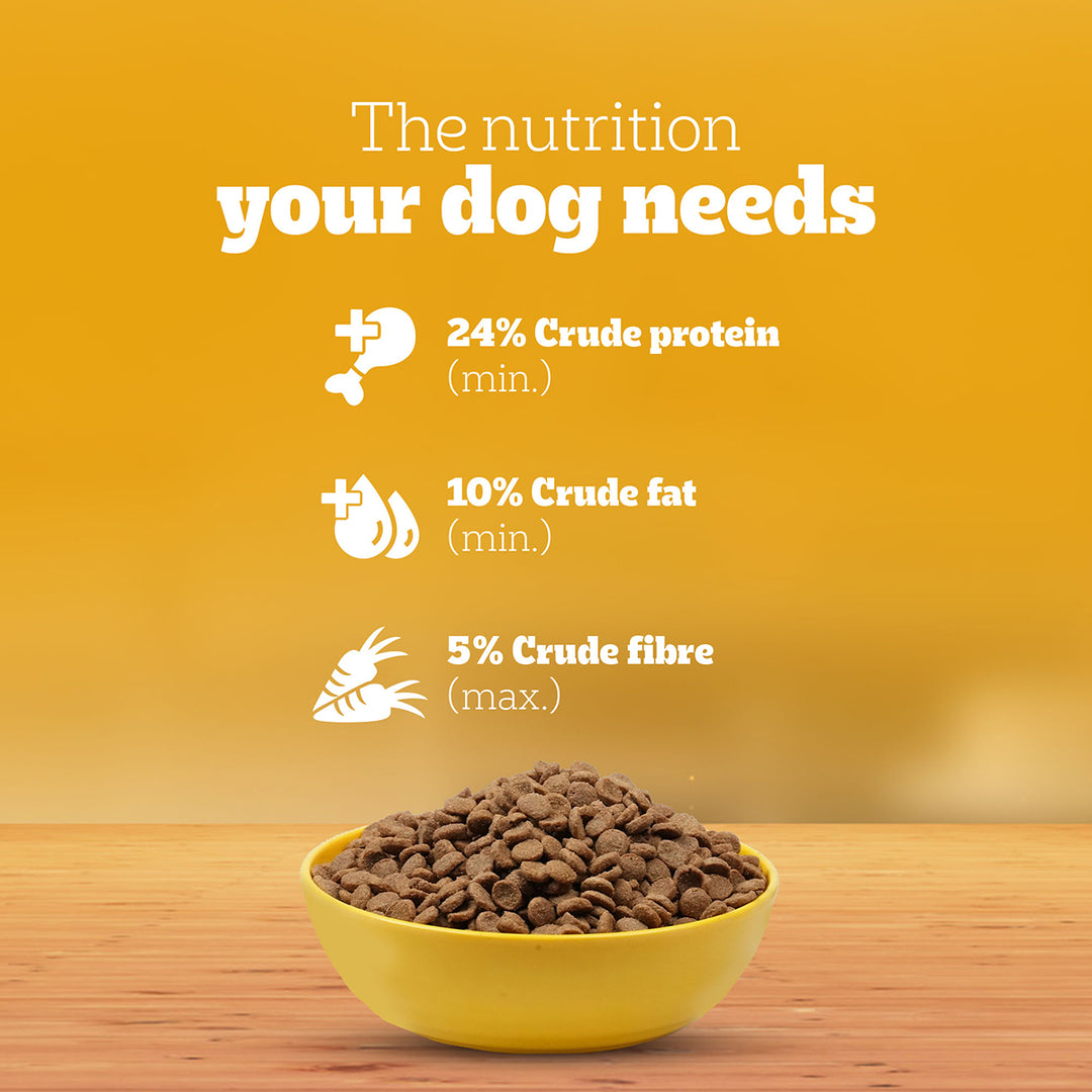 Formulated by experts, this dry dog food promotes strong muscles and bones with high-quality protein and calcium, supports a healthy digestive system with dietary fiber, and enhances coat shine with Omega-6 and zinc. Developed with insights from the Waltham Centre for Pet Nutrition, every Pedigree product meets the standards set by NRC 2006 of the U.S. National Academy of Science. Follow the recommended feeding guidelines on the pack and treat your pet to a healthy and flavorful mealtime with Pedigree.