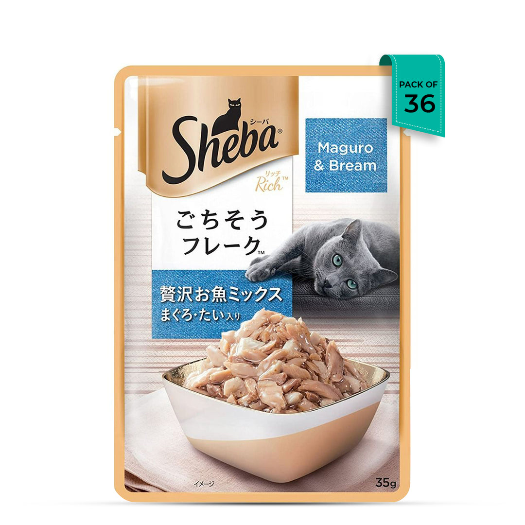Sheba Rich Fish Mix (Maguro & Bream) Premium Wet Cat Food - All Breed Adult is ideal for adult cats of all breeds.